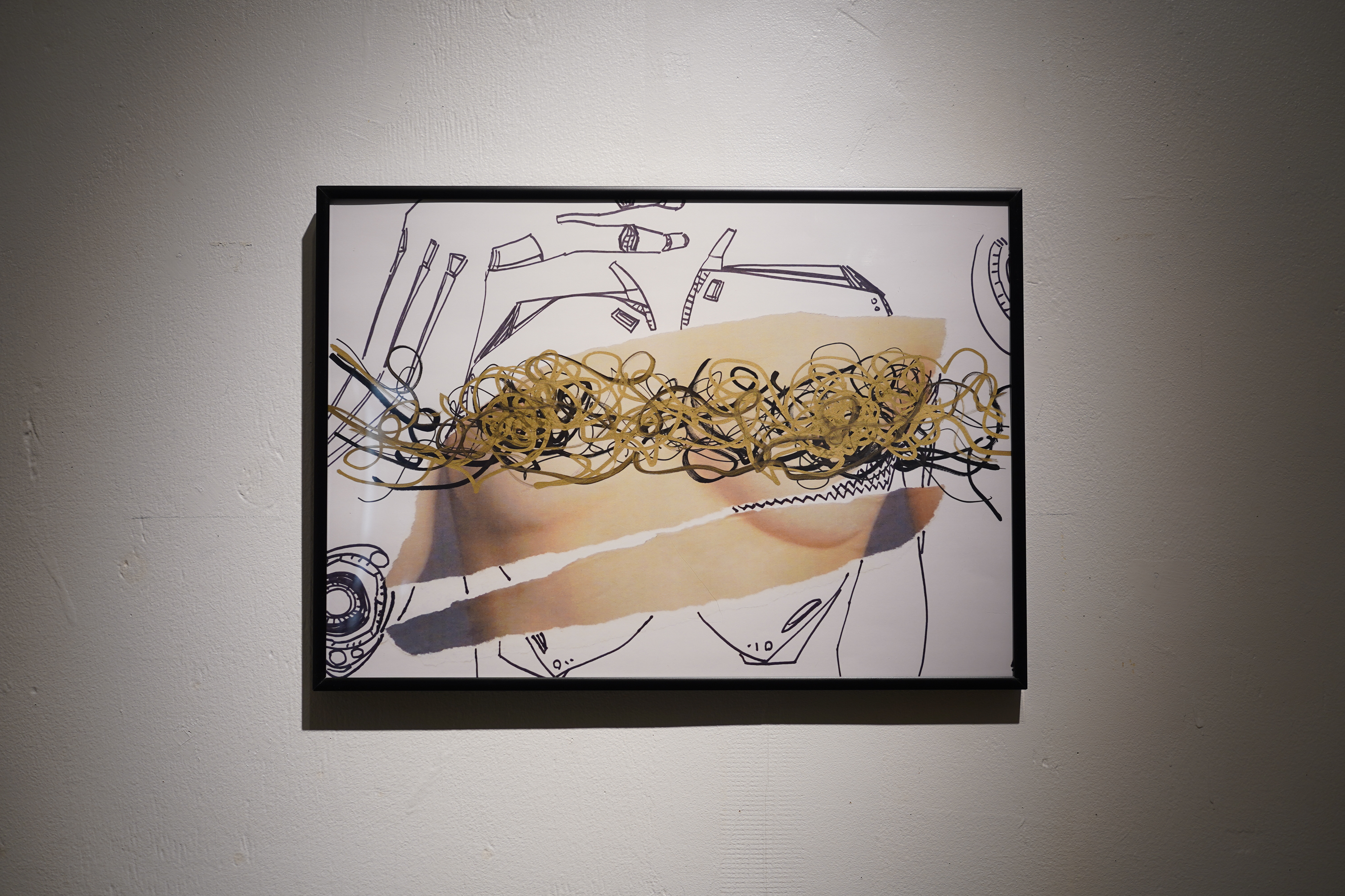 Human beings such as cyborgs have imagined the future of utilizing genderless Nipless. Gold and black random lines decorate the cyborg body as a pattern. The body of the machine is intended to eliminate the physical difference between men and women. A future with less gender differences is desirable. The "X" symbolizes a new view of gender, meaning that gender is unknown.